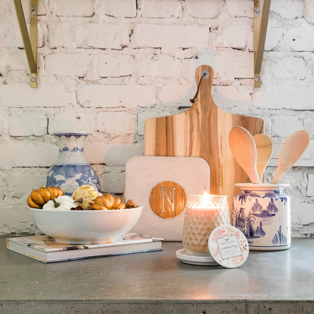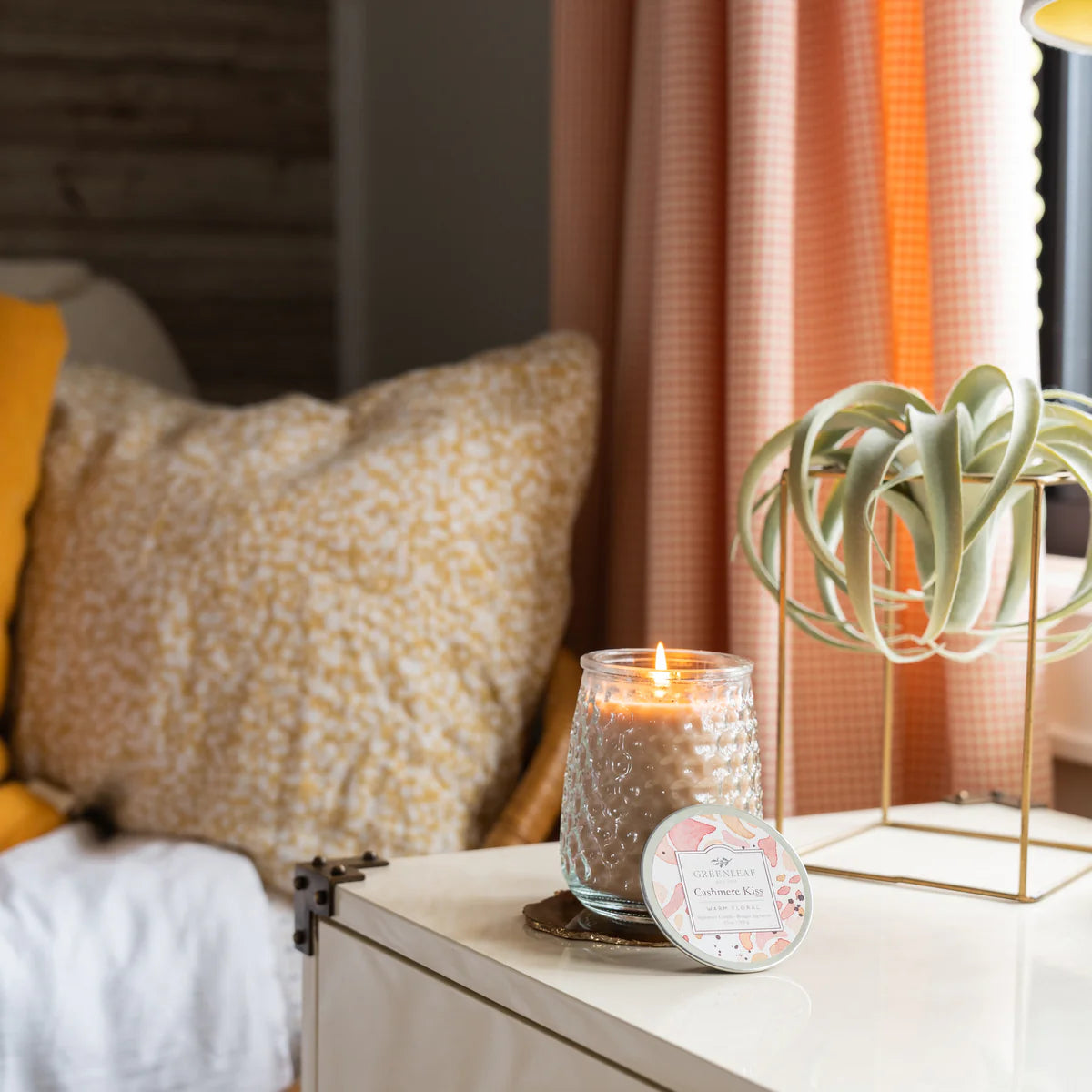 With a clear, glass hobnail textured jar and a silver lid, our Signature Candle is the perfect match for any style. Fill your home with inviting Greenleaf fragrances that create a warm, welcoming atmosphere in every room.