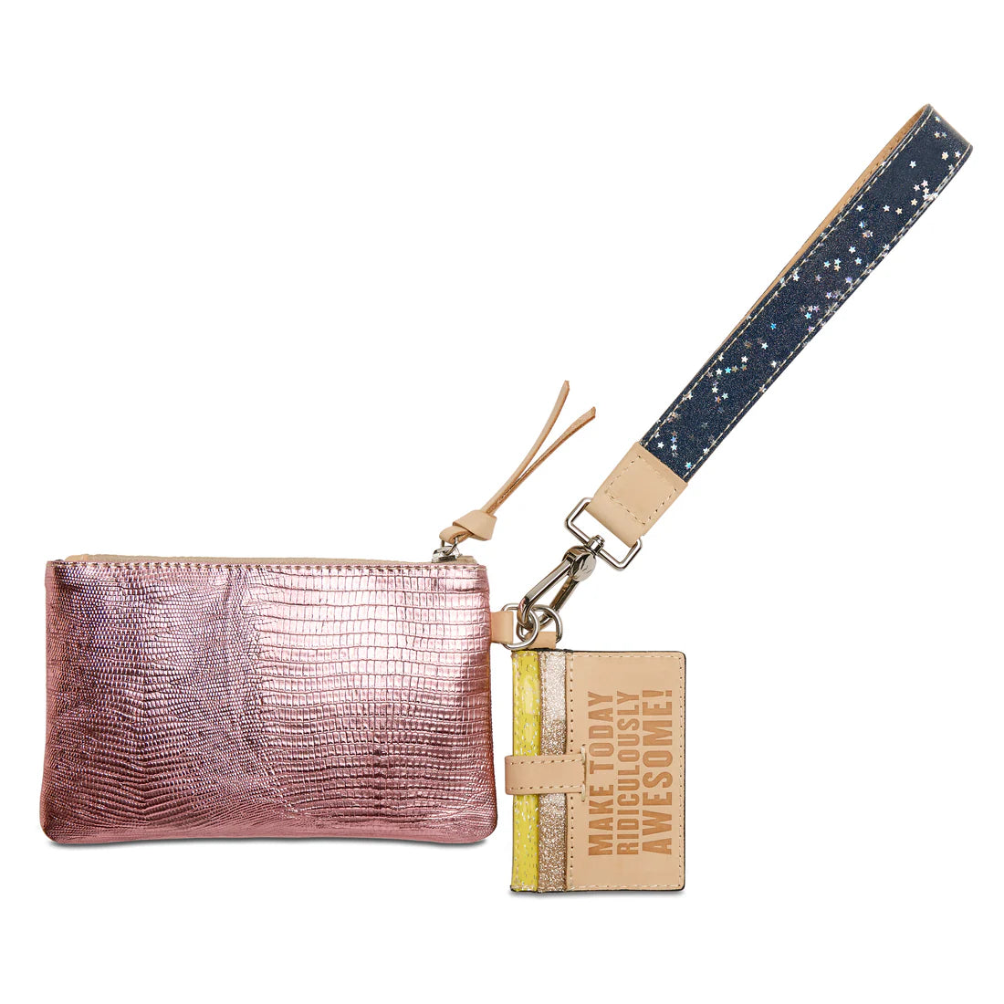 The Combi, a combination of on-the-go accessories, is a new way to carry your keys, cards, and the small stuff together or separately. This textured wristlet wallet includes a pocket pouch, secure card slot wallet and fits comfortably around your wrist.