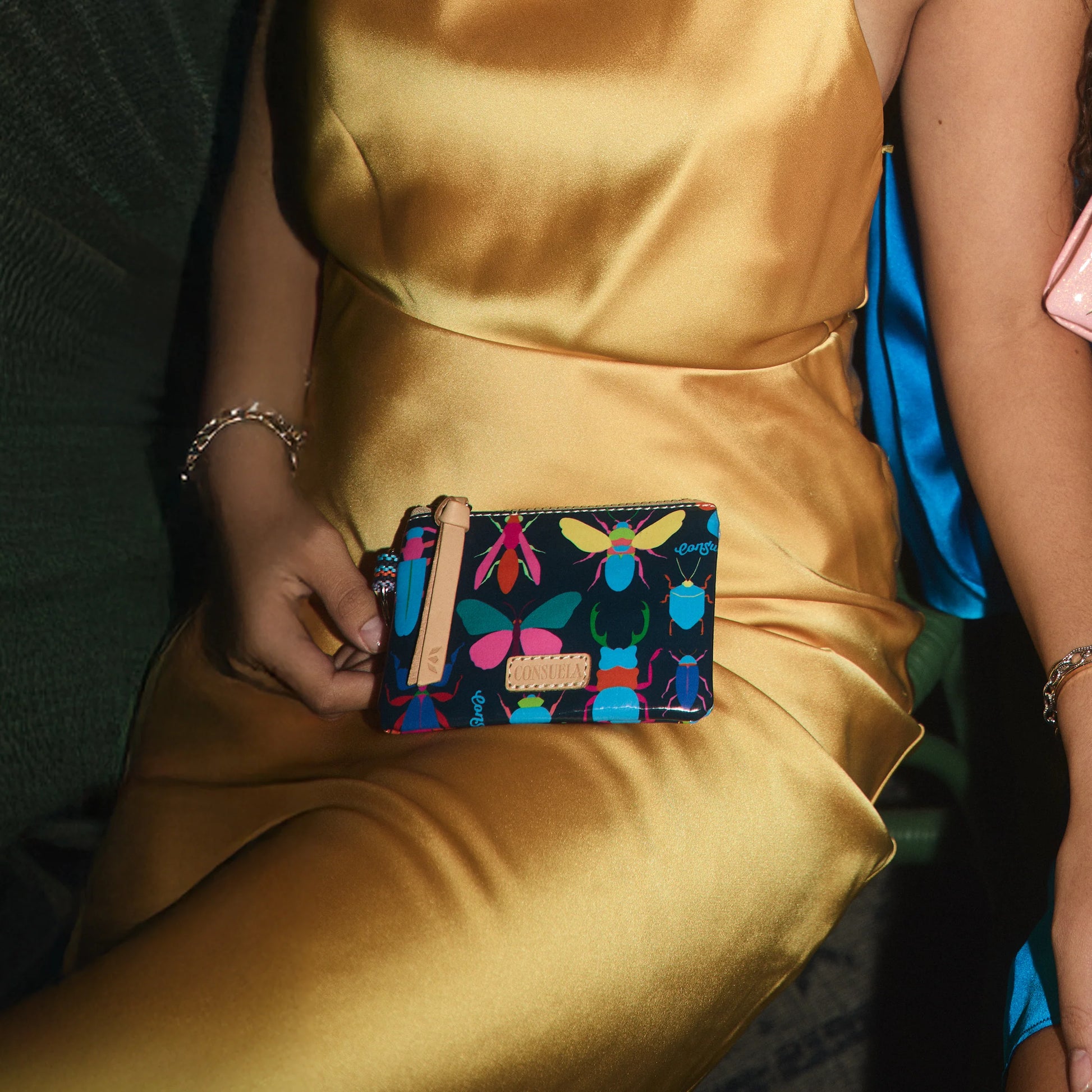 - Deep blue ConsuelaCloth™ featuring colorful insect exterior