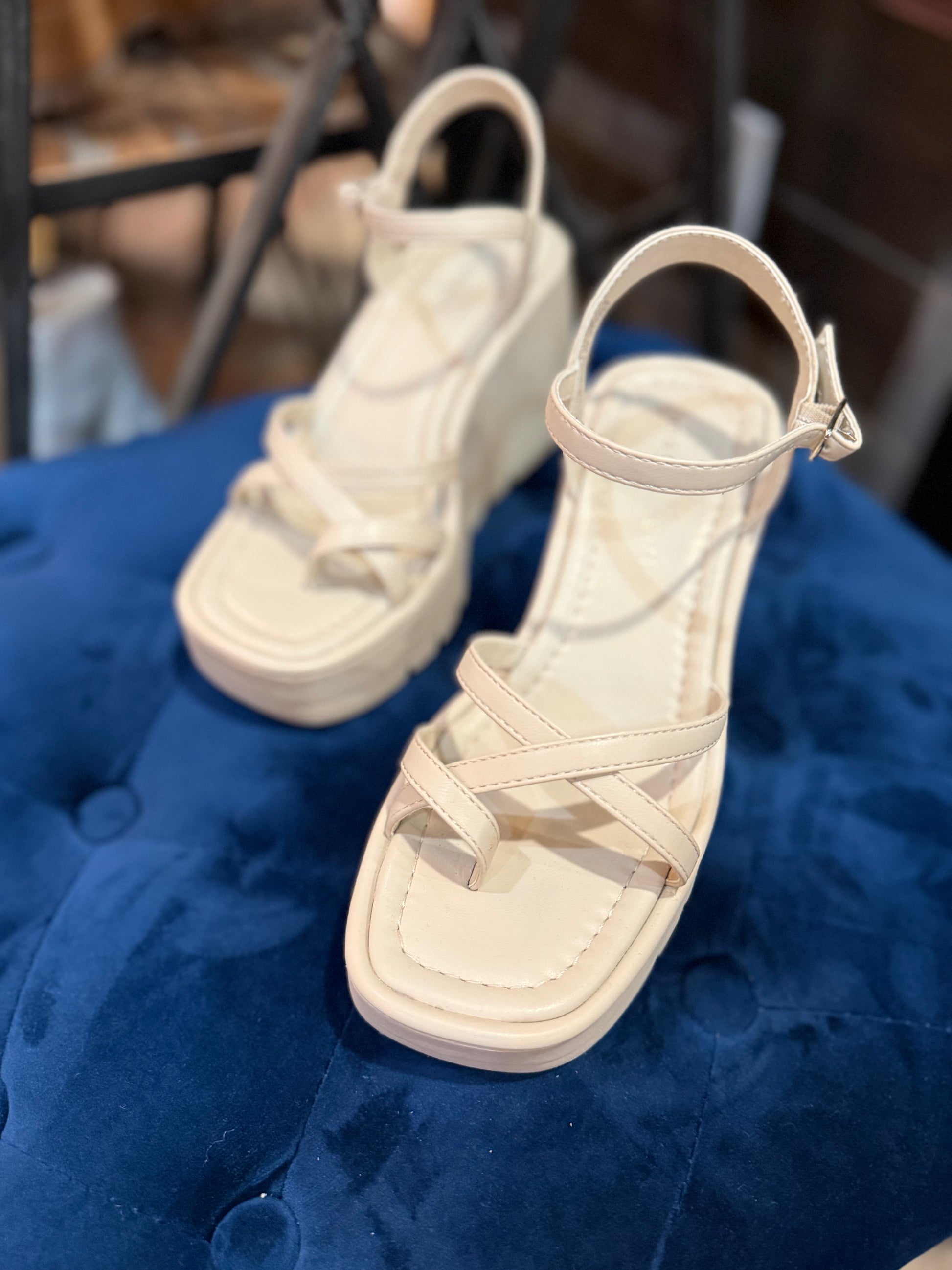 A comfy wedge for Spring and Summer that is easy to dress up or wear on a casual day. This taupe color will match everything in your wardrobe.