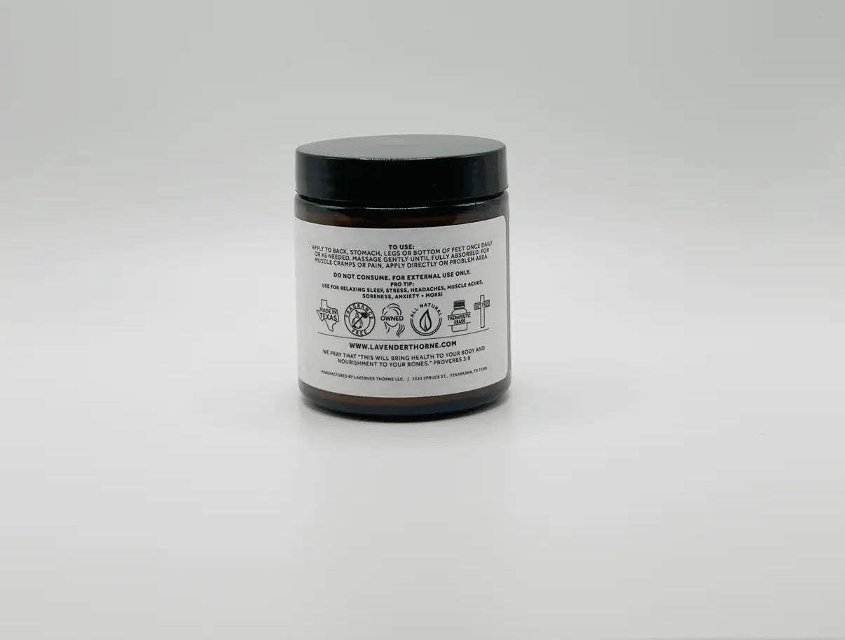 Magnesium butter is made with magnesium oil and essentially oils to help relieve muscle pains and cramps, joint pain, headaches, back pain, neck pain, sleep problems, and much more! Apply on areas with pain and discomfort. For headaches, apply onto the back of neck. For sleep, apply to bottoms of feet, ankles, and back of neck.