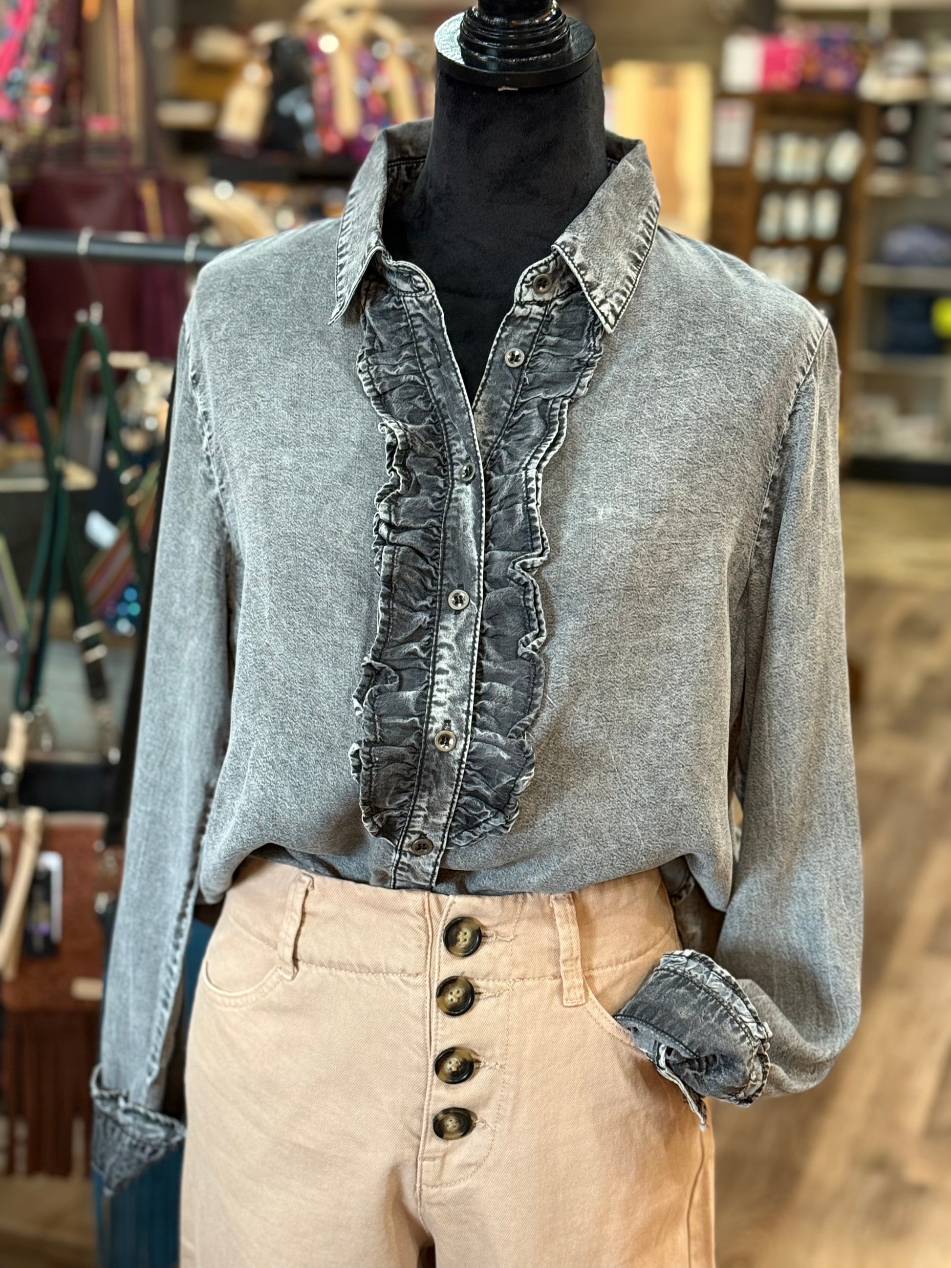 Ruffled Chambray Shirt