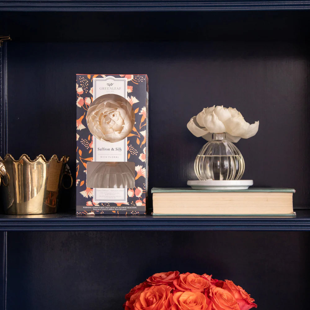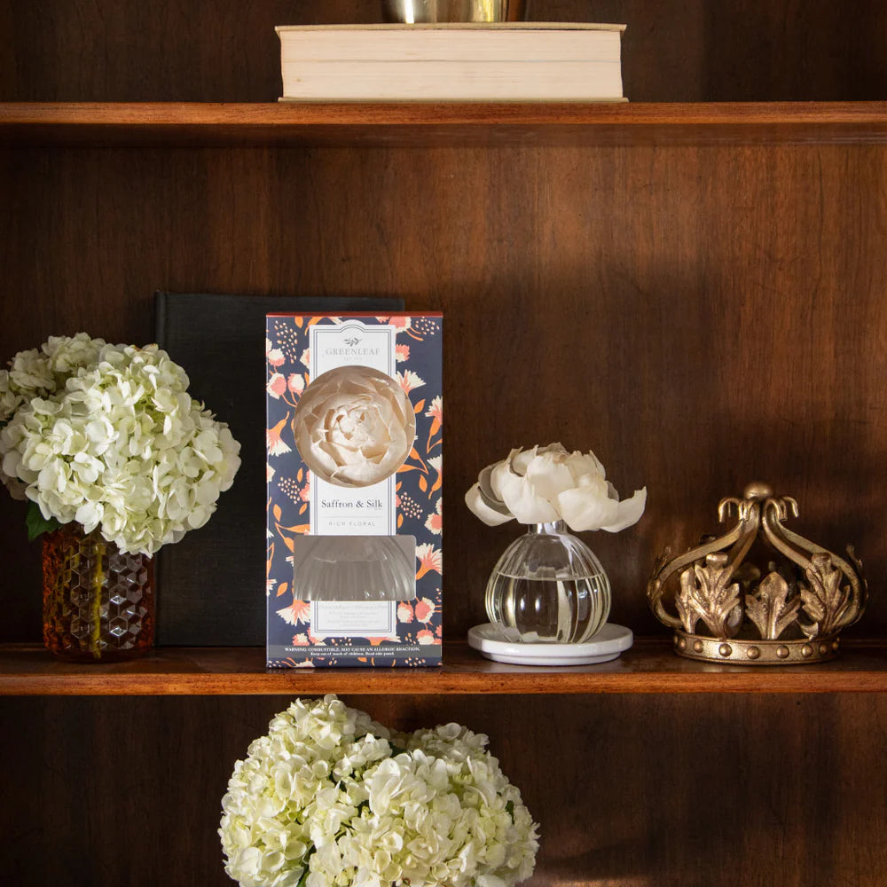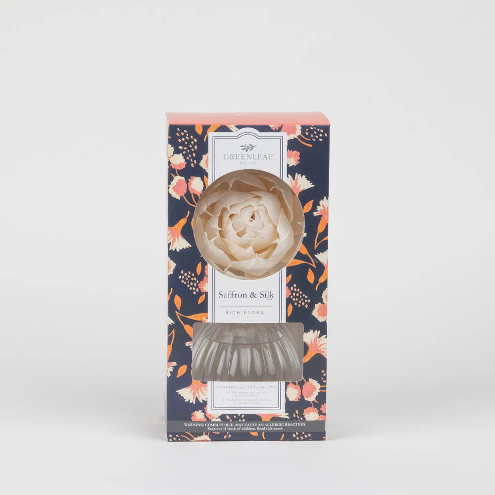 Our Flower Diffuser combines beauty and fragrance in one elegant display. Featuring your favorite Greenleaf scent and a handcrafted sola paper flower, it blooms as it diffuses—releasing fragrance for up to 60 days. As the oil travels up the wick, the flower gradually opens and softens in color, eventually resembling real petals. Housed in a clear glass vessel, it’s a stunning addition to any space.