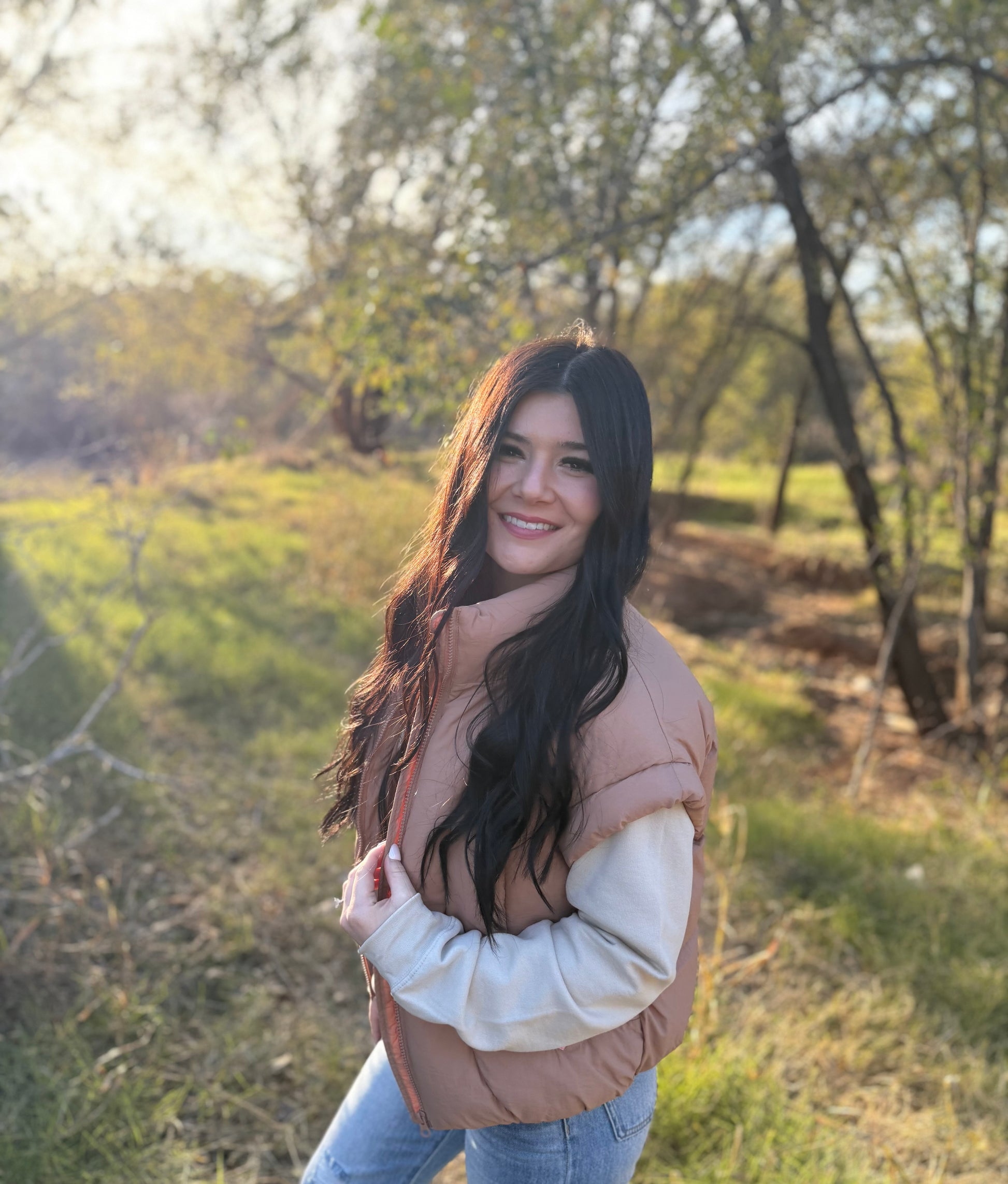 The stylish vest fits true to size. The added sleeve gives it a little extra detail.